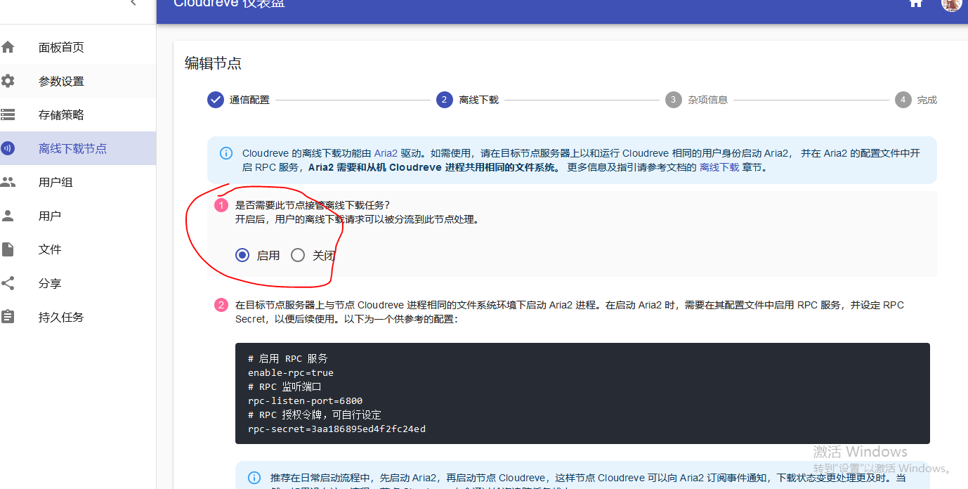 找到从机安装cloudreve的目录,打开conf.ini,在下方填入图中的代码,填好后重启cloudreve