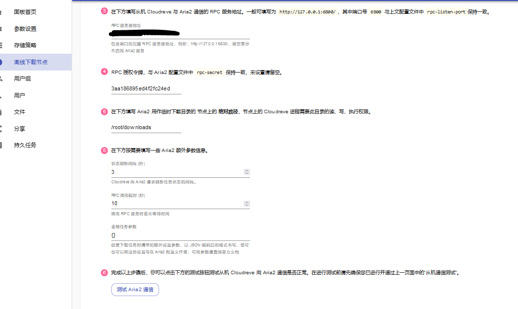 PRC服务器地址默认是http://IP:6800/,记得带端口,同时防火墙要开启相应端口