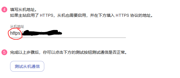 若你的主服务器已经设置了域名反向代理,而且是申请了ssl,那么代理的域名也要申请ssl,反向代理的目标路径如果是带端口的那么从机地址直接填https://你的域名/即可